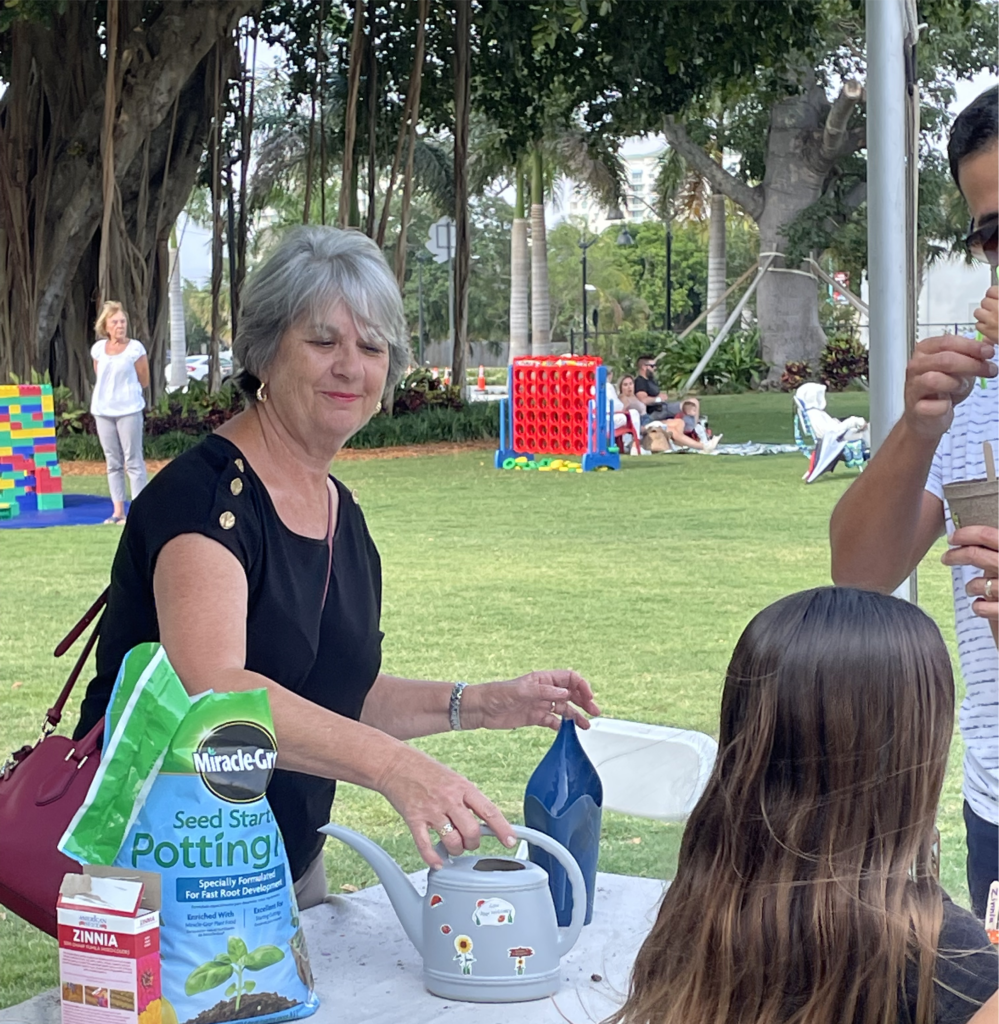 The City of Boynton Beach has a monthly family-friendly First Friday event. On May 6, BBGC members hosted a tent where children decorated paper maché flower pots with markers, stickers, and pipe cleaners. They filled their pots with soil, planted a few zinnia seeds, added water, and proudly walked away holding the hands of their parents. So much FUN!